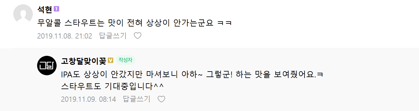 제공받은 2종 중에 하나는 스타우트인데 벌써부터 엄청 기대되네요.