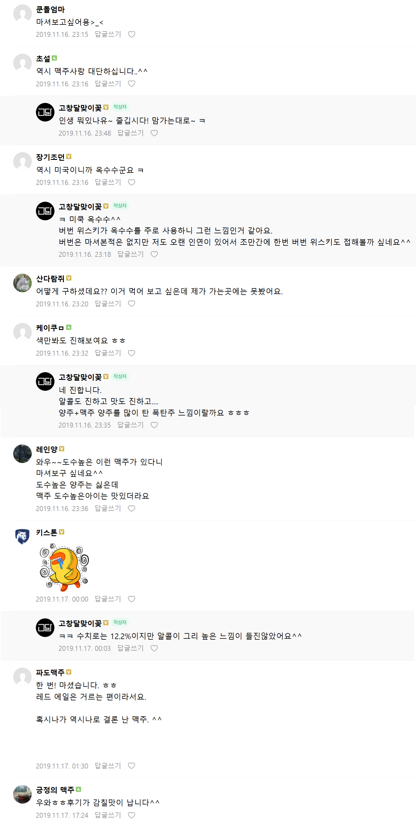 추론해보자면 맥주에 부가물로 옥수수가 많이 들어가다보니 거기에 익숙해져 옥수수를 이용한 양주인 버번에는 저도 어느정도 친숙한 느낌을 받는게 아닌가 싶어요.