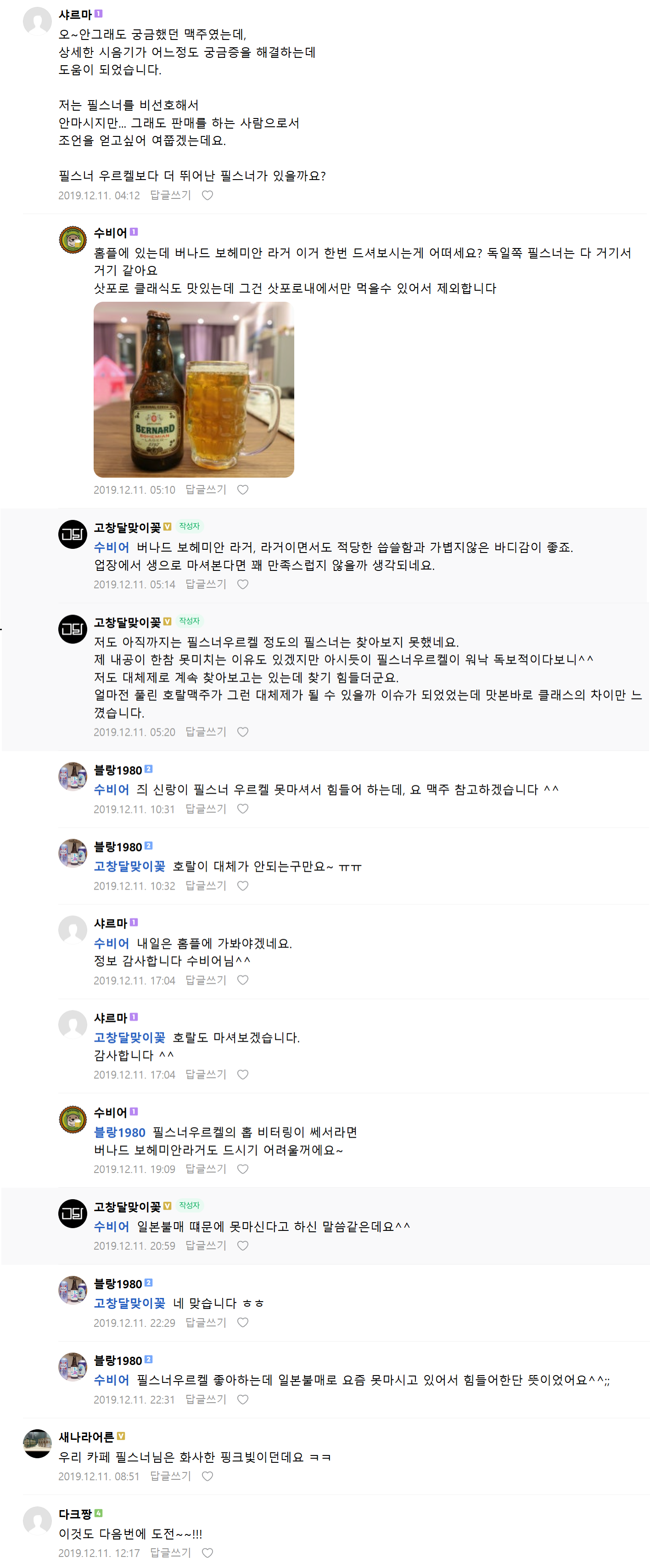 요즘 일본맥주 불매여파로 필스너 우르켈을 한동안 안마시고 있는데 그에 비해 많이 라이트하지만 그래도 씁쓸하게 시작되는 필스너의 느낌과 라거처럼 깔끔한 뒤끝이 좋아서 아쉬운대로 대체제로도 괜찮아 보입니다.
