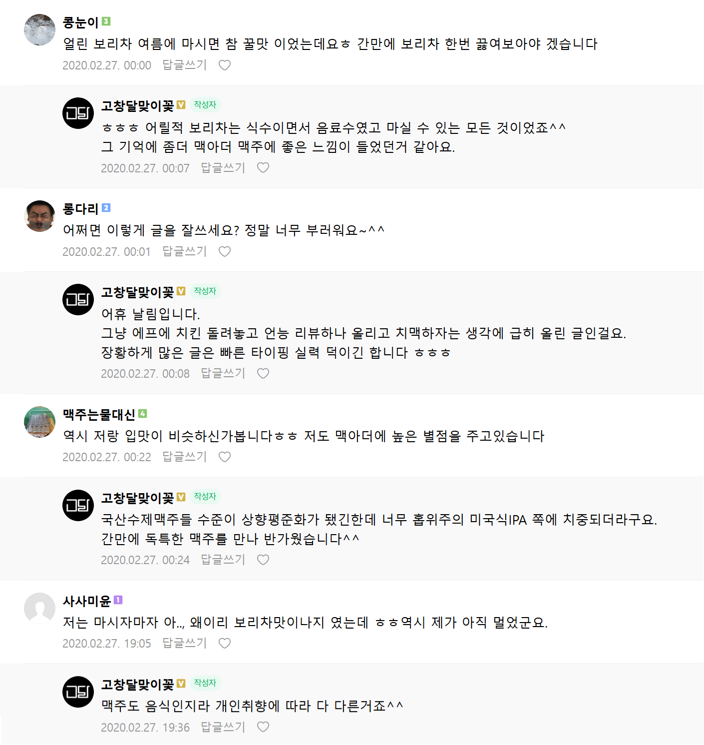 무엇보다도 국산맥주라는 점에서 더욱 반갑고 좋았던거 같습니다.