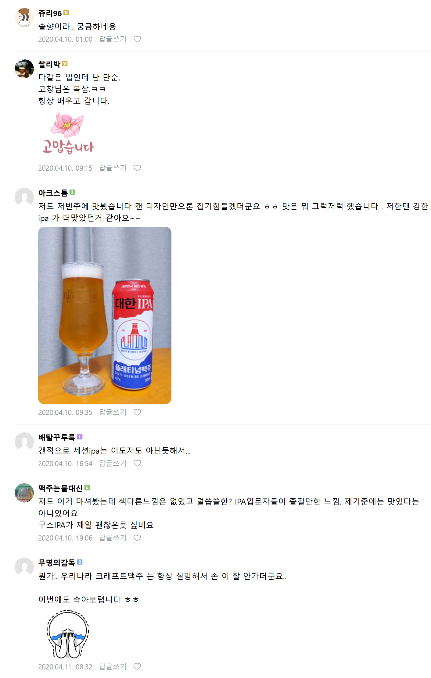 IPA를 처음 마셔봤을때 강한 솔향이 나서 맥주에서 무슨 이런 맛이 날까... 한때 좋아했던 솔의향 느낌이라 의아해했던때가 생각나네요.