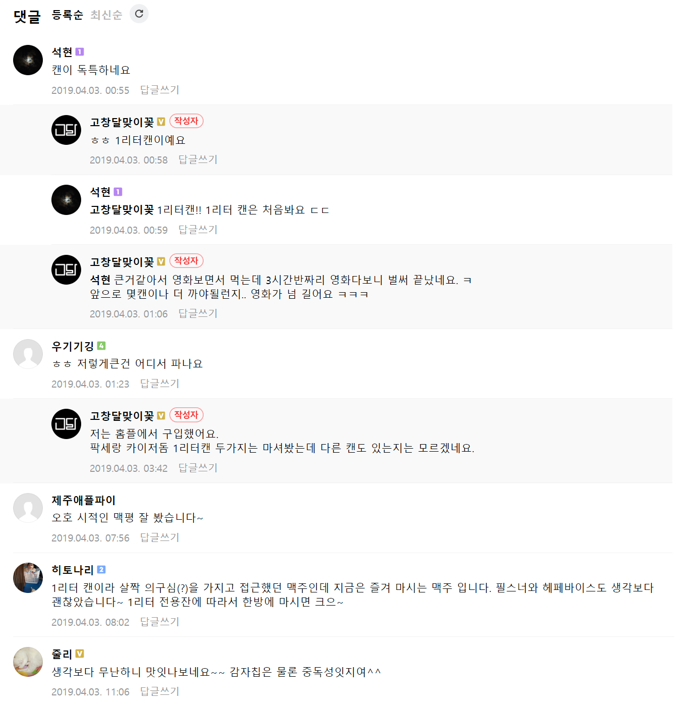 1리터까리 큰캔인데 뭔가 맥주의 느낌이 없고 분유통이나 가공된 식품의 느낌이 들어서 그랬던거 같다.