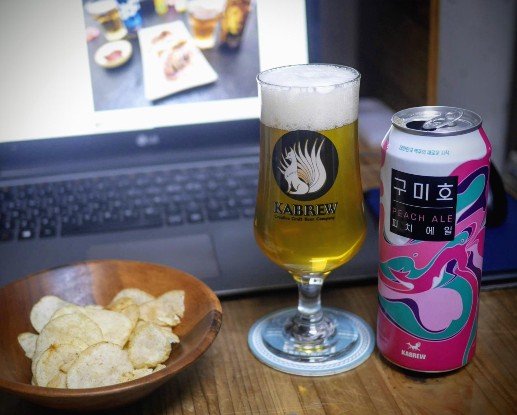 보통 이런 종류의 맥주는 주로 과일향을 첨가해 맛을 내는데 이 맥주는 복숭아 과즙이 들어가서인지 향만 복숭아 느낌이 아니라 진짜 복숭아를 입에 넣었을때와 비슷한 느낌을 준다.
