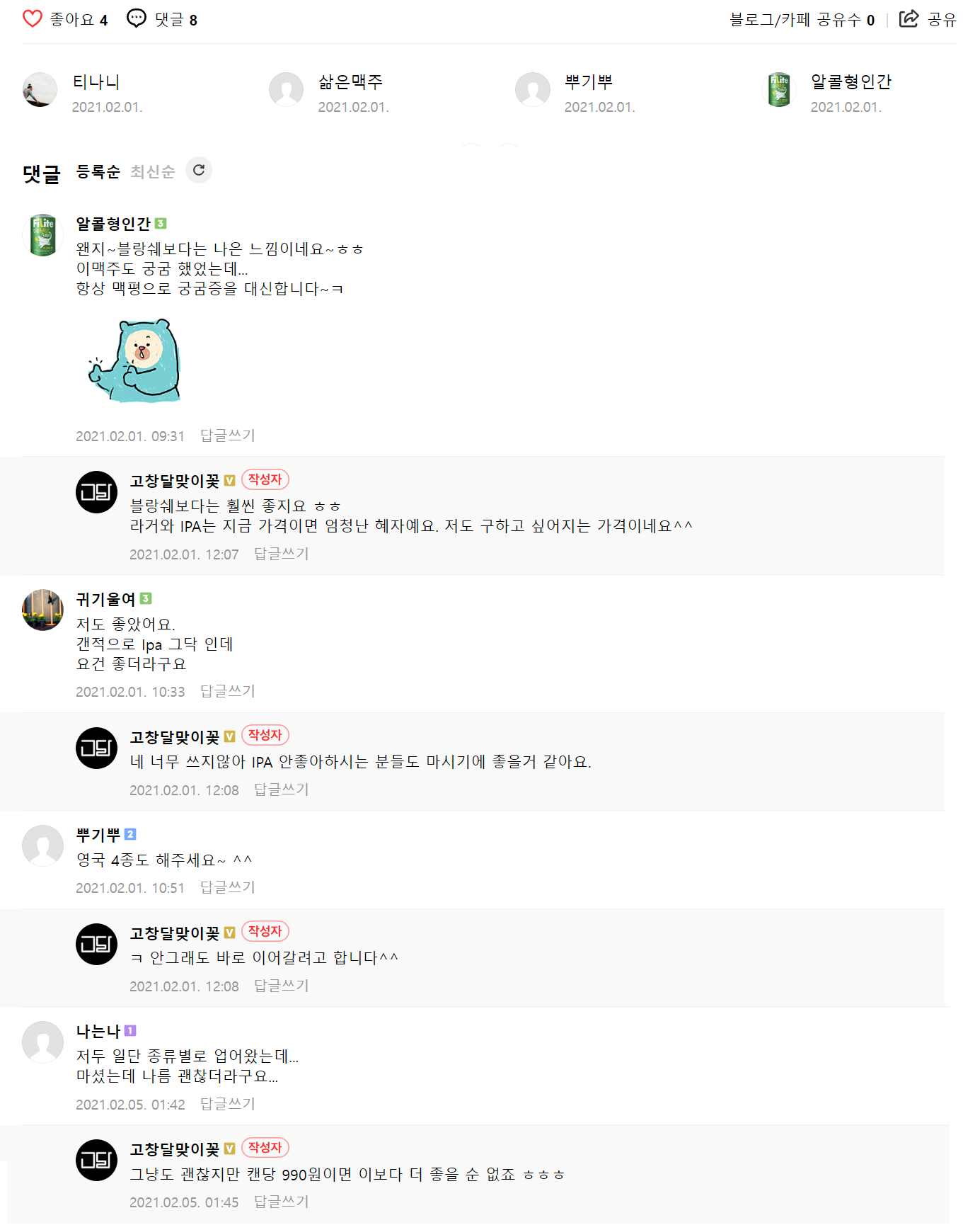 라거는 만족스러웠던 반면 블랑쉐는 어중간한 느낌으로 큰 감흥이 없었다.