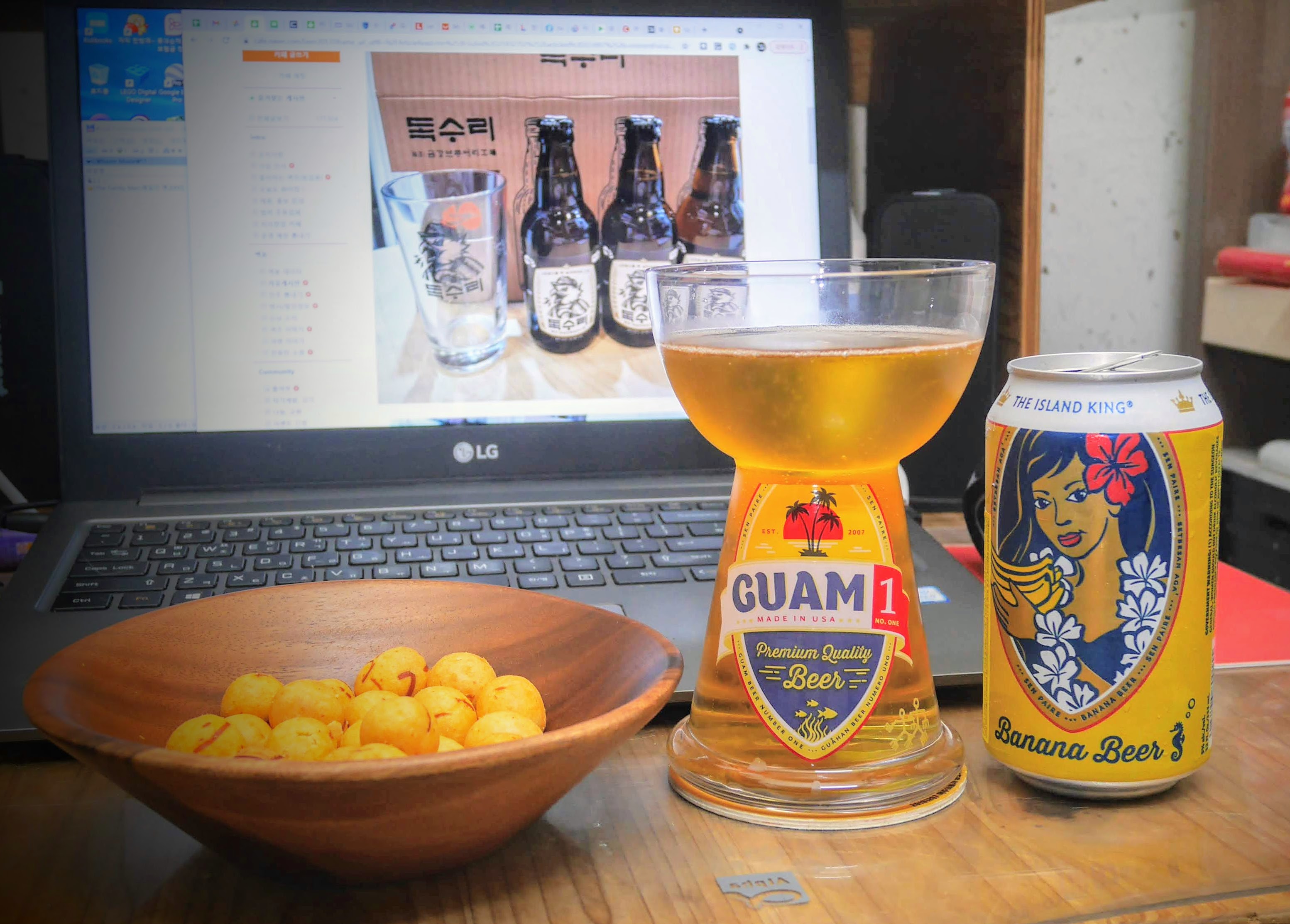 솔직히 괌맥주 라거 마셔보고 별다른 느낌이 없어서 바나나맛도 기대하지 않았는데 이정도면 아주 재밌는 맥주로 합격~