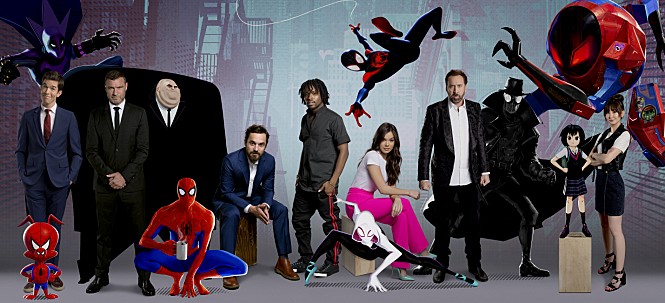 먼저 극 초반에 허무하게 사망해버리는 피터파커 스파이더맨과 그를 잇는 2대째 스파이더맨이 되는 흑인소년 마일스는 현세계의 인물들이고 이 후로 다른 평행세계에서 오게되는 다양한 스파이더맨들이 있다.