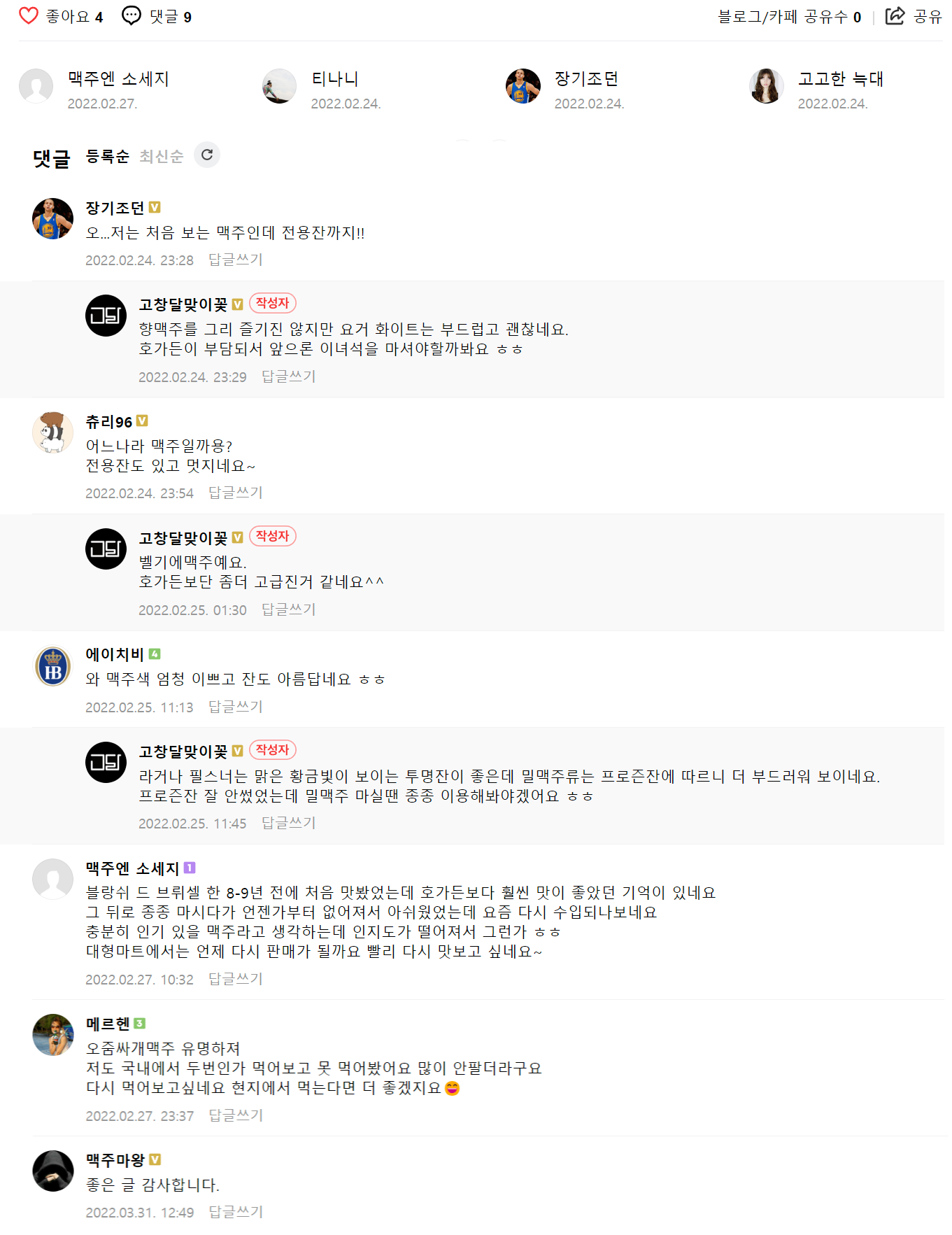 개인적으로 호가든은 향이 강해 첫모금 이후로는 좀 부담되서 자주 찾는 맥주는 아니다.