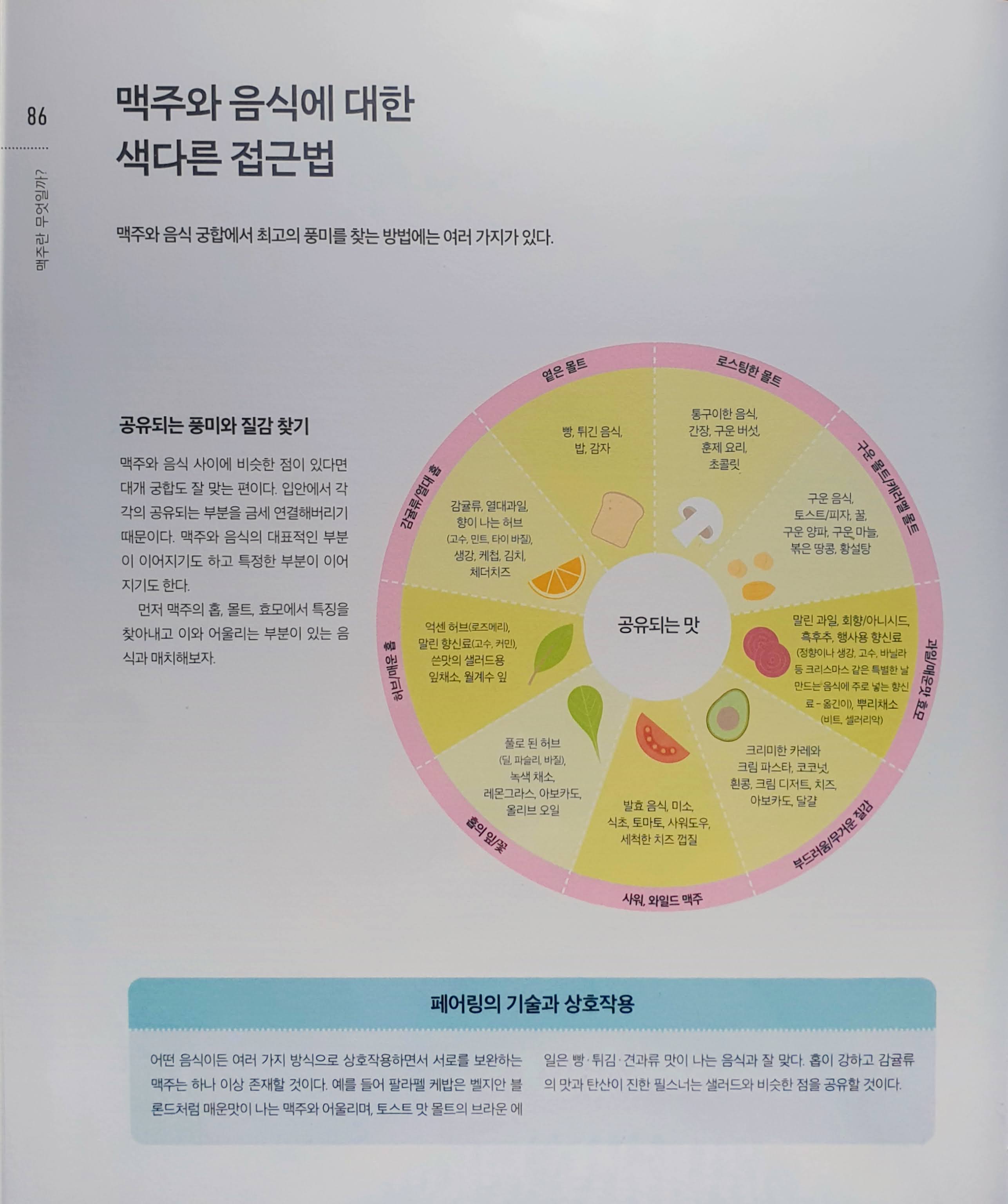 마지막 부분은 음식과의 궁합(페어링)을 다루고 있는데 다양한 방식으로 조합을 찾아내는 방법이 소개되어있다.