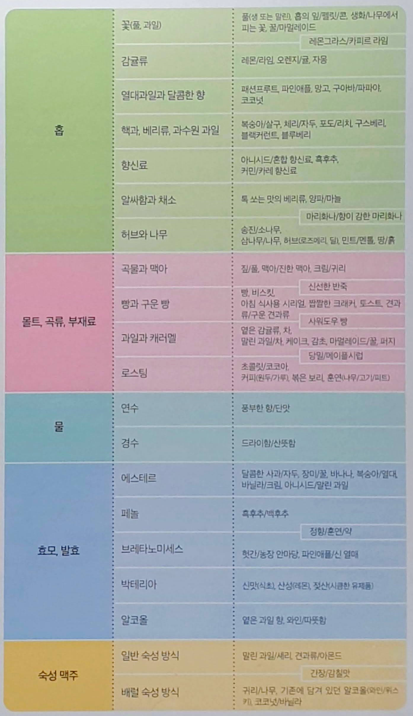 이 표만 갖고 있어도 어떤 데에서 이런 맛과 향이 나오는지 유추해볼 수 있고 이 맥주의 특장점이나 제품기획 의도까지도 파악할 수 있게된다.