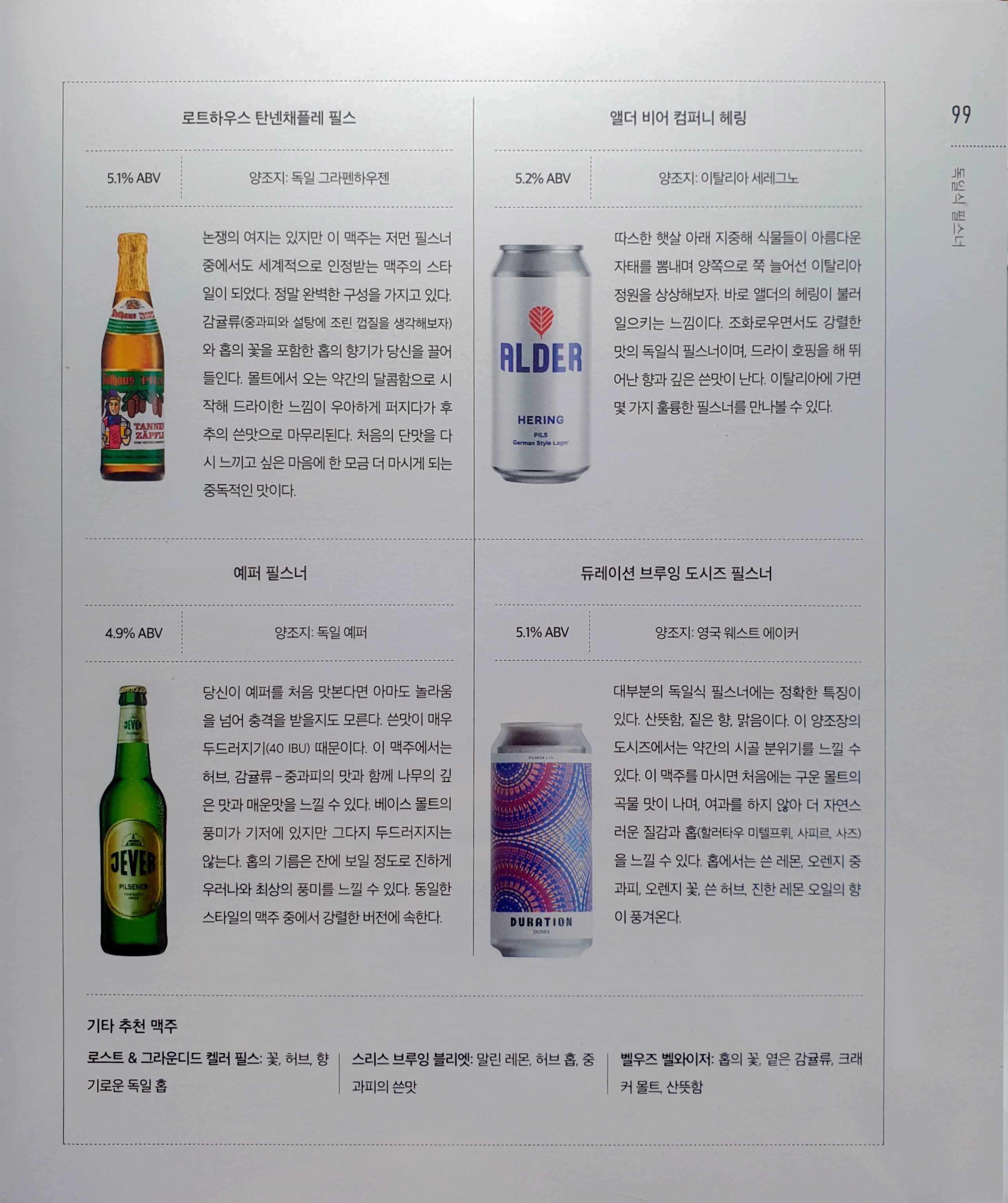 국내 대기업의 라이트 라거에서 눈을 돌려 크래프트 비어에 이제 막 눈을 뚠 새내기부터 맥덕이라 자처하는 마니들까지도 꼭 알고 마셔야할 정보들이 가득가득해 감히 필독서라고 추천드려본다.