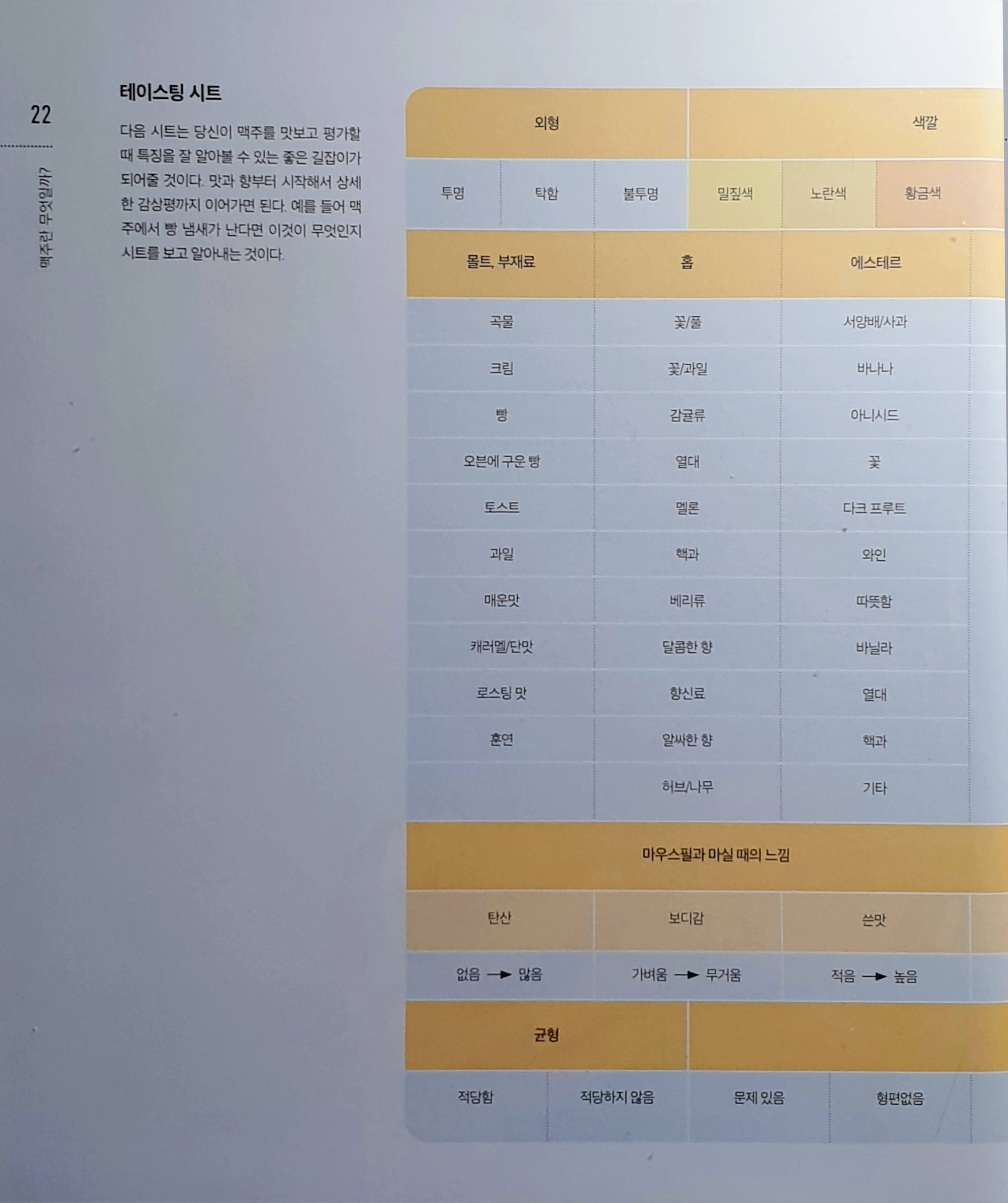 테이스팅 시트는 당신이 맥주를 맛보고 평가할 때 특징을 잘 알아볼 수 있는 좋은 길잡이가 되어줄 것이다.