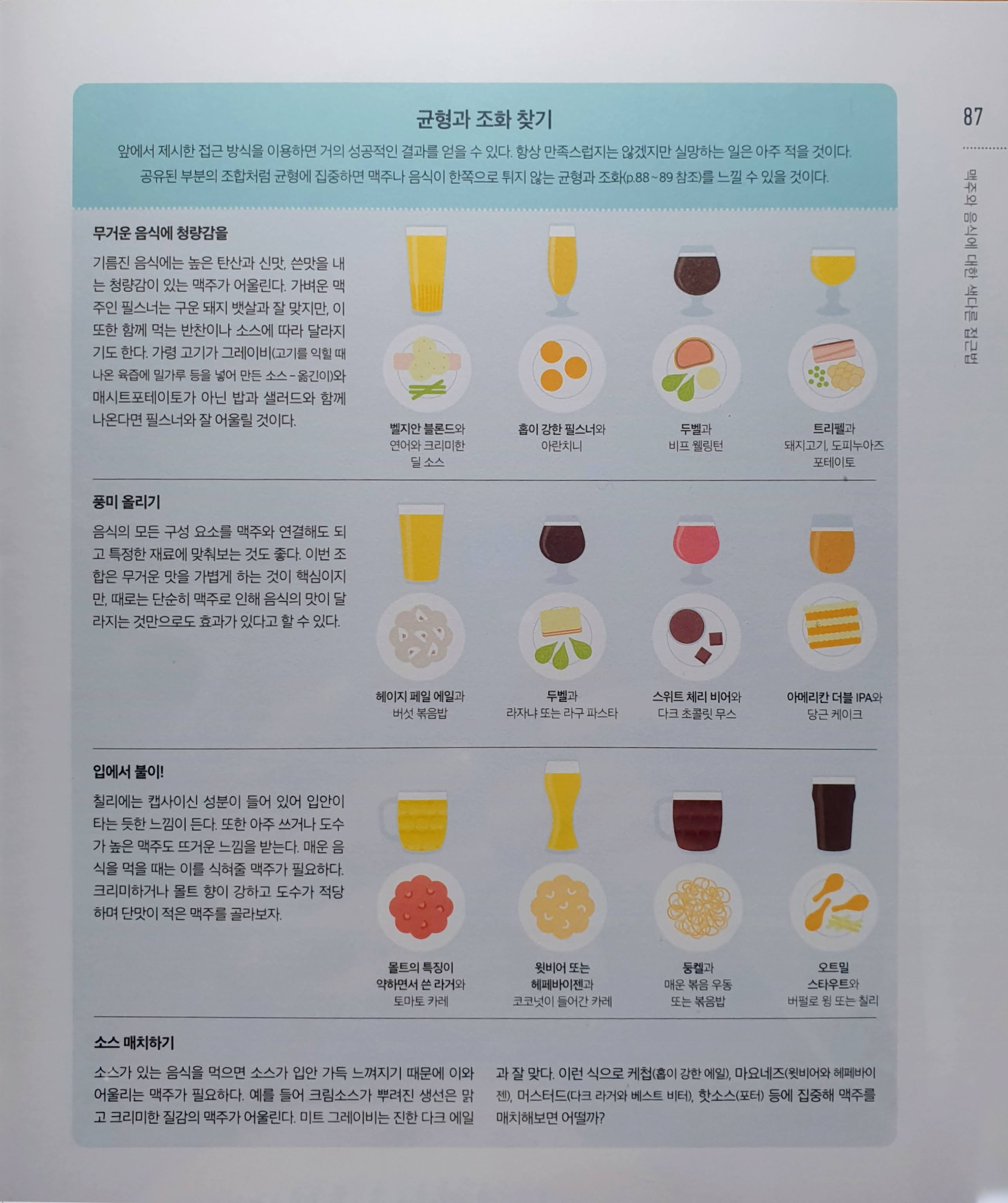 마지막 부분은 음식과의 궁합(페어링)을 다루고 있는데 다양한 방식으로 조합을 찾아내는 방법이 소개되어있다.