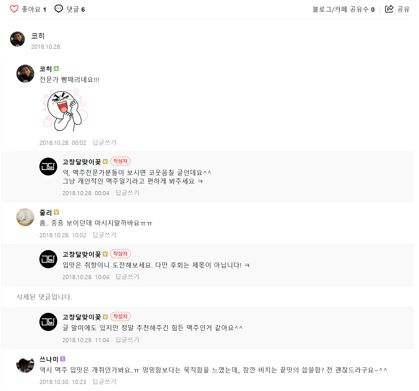 IPA는 그 당시에 마셔보곤 대부분의 평처럼 IPA스럽지 않은 밍밍함을 느꼈는데 그리 나쁘다는 느낌은 아니었었네요.