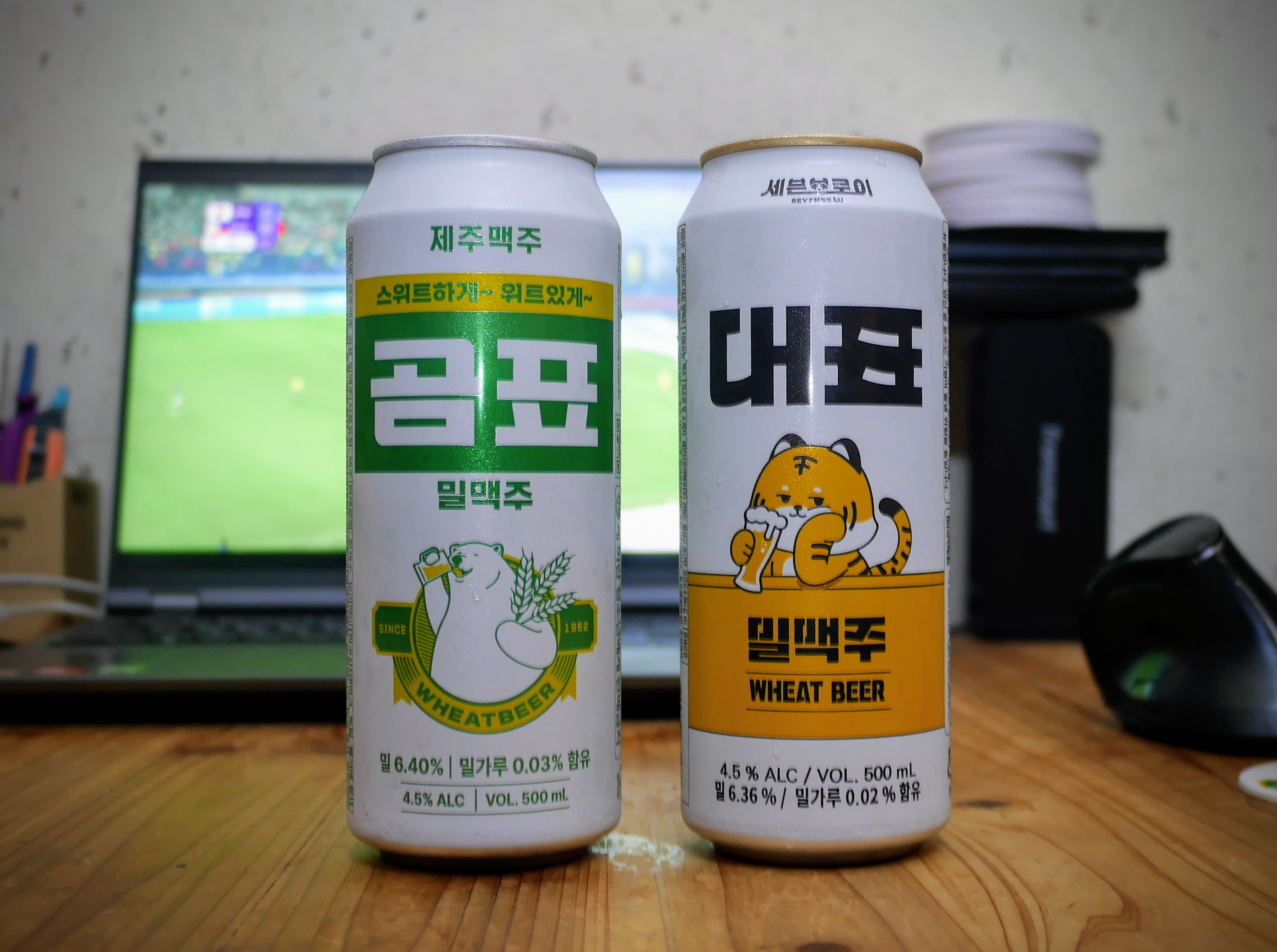 좌측 제주맥주에서 만든 곰표맥주 시즌2 / 우측 원조 곰표맥주의 정통? 후계자 세븐브로이의 대표 밀맥주