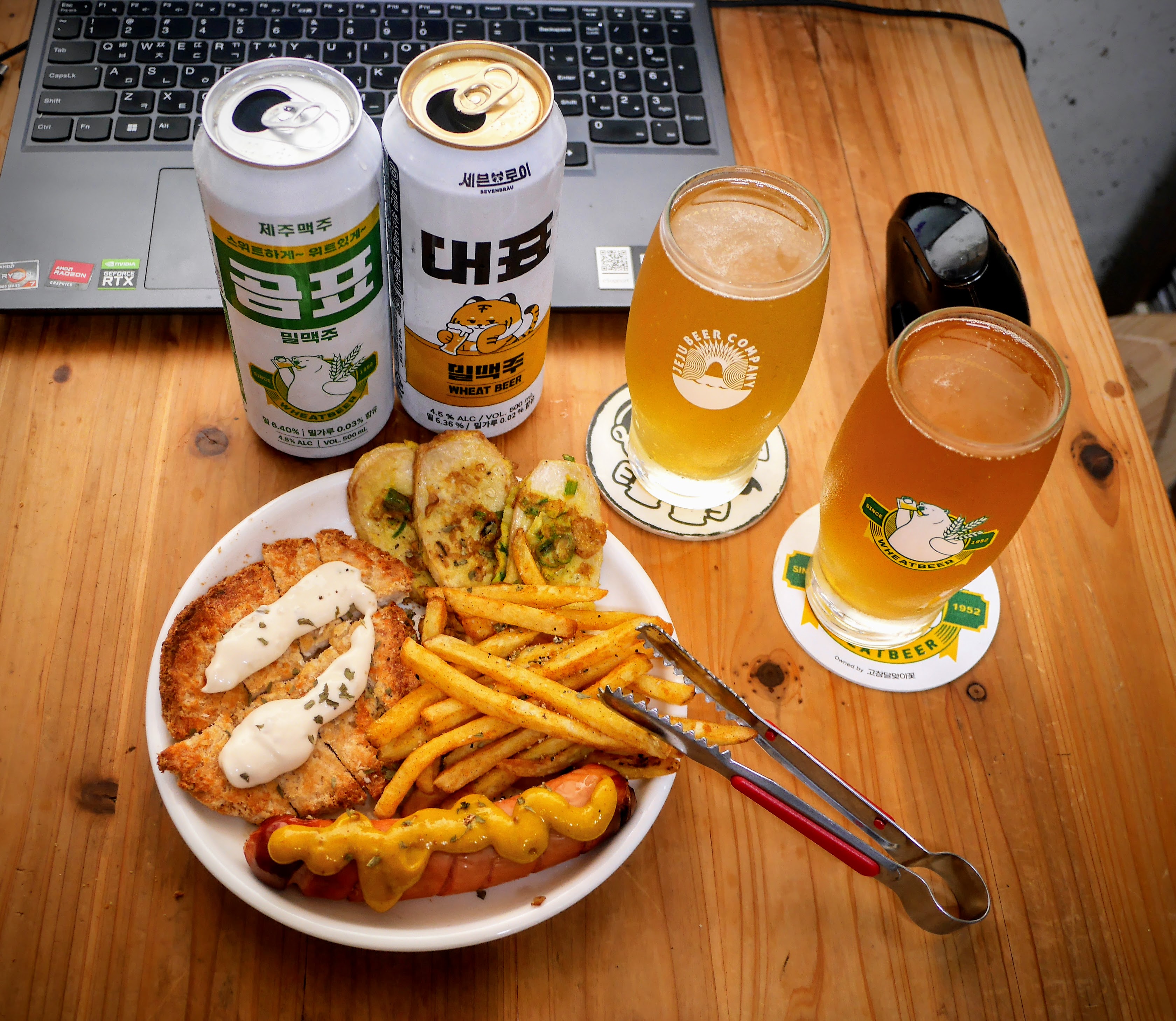 잔이 뒤바뀐거 같지만 예전 곰표맥주잔은 세븐브로이 원조 곰표맥주이므로 이런 세팅을 하게되었다. 좌측은 제주맥주 전용잔