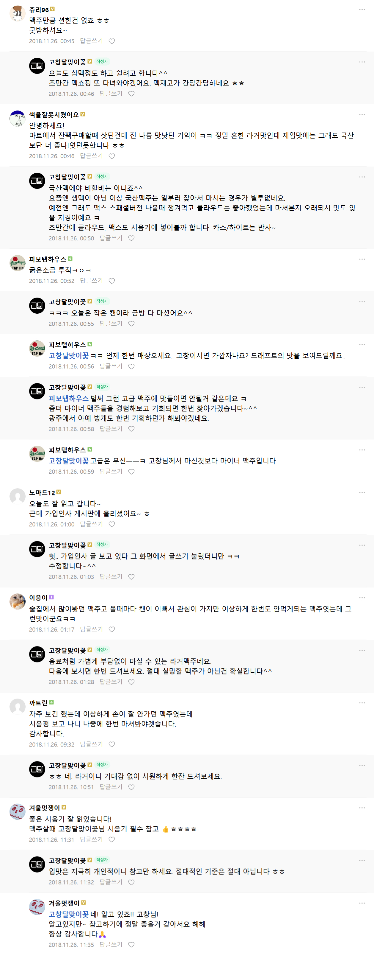 원재료 - 정제수, 보리맥아, 옥수수, 쌀, 호프 (옥수수도 들어갔었군요)