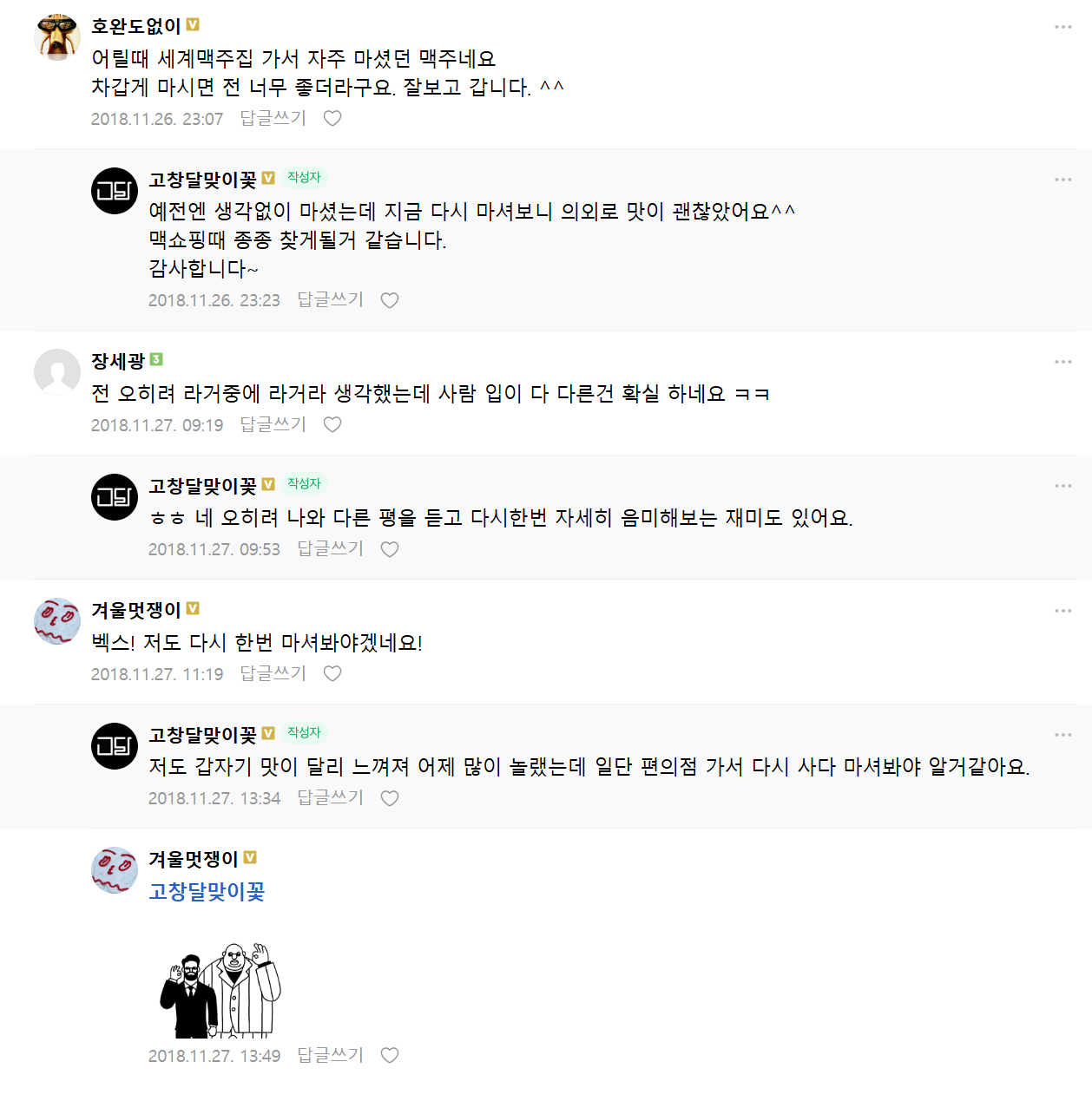 오랜만에 오늘 마셔보니 별생각없이 마셨던 그때와는 완전 다른 맥주를 마신것처럼 맛이 새롭게 느껴집니다.