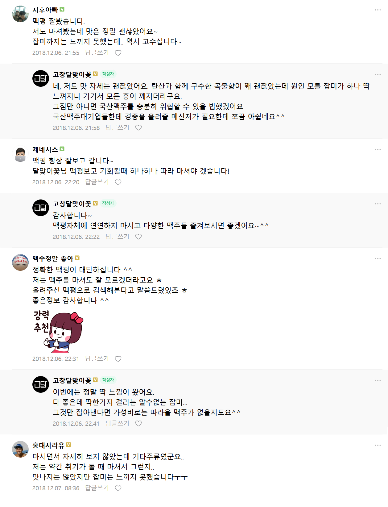 원인을 알수없는 찜찜한 맛만 잡아낸다면 국산맥주을 올킬할 수도 있을법한데 아쉽네요.