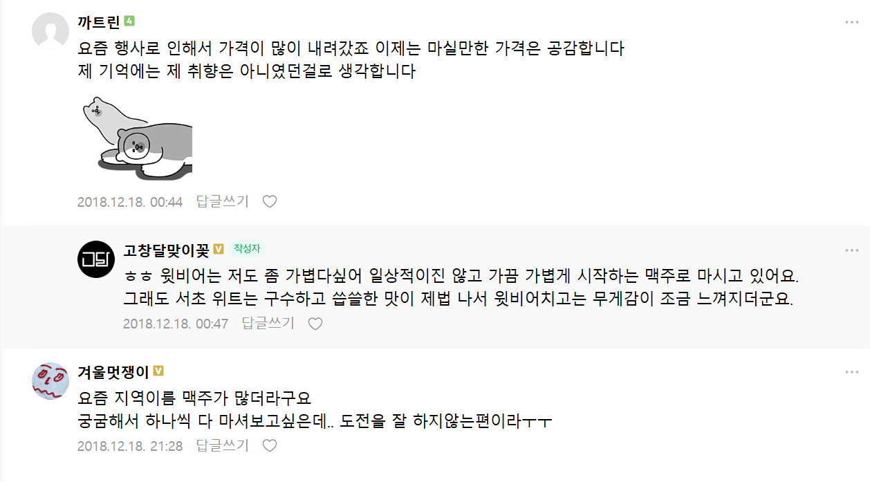한줄평 - 맥아, 홉향을 잘살린 윗비어