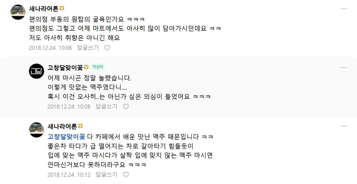 모를땐 그냥 마셨는데 리뷰를 위해 맛을 탐색해보려니 국산맥주와 그리 다른점을 모르겠습니다.