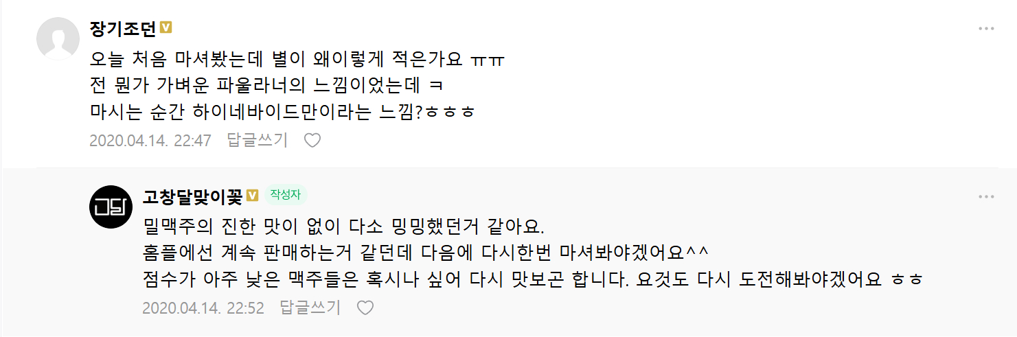 | [맥평] 빈땅 필스너 ★☆ (0) | 2025.09.12 |
