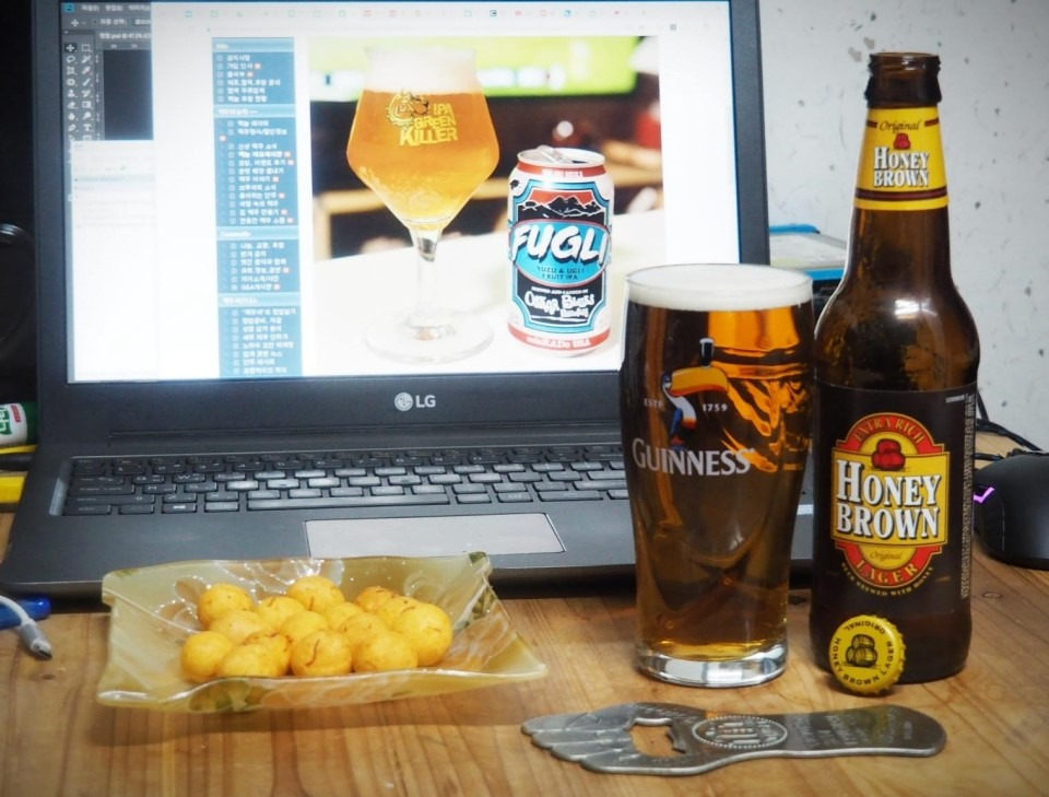 잔에 따라놓고보니 맥주빛깔이 왠지 꿀하고 어울릴법합니다.