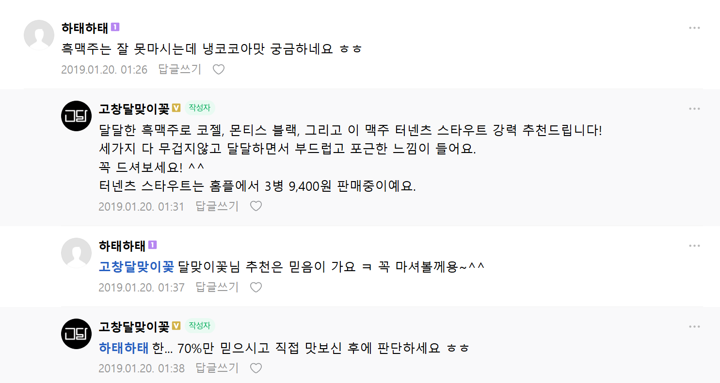 첫모금에 '맛있다'라고 혼잣말을 했네요 ㅎㅎ