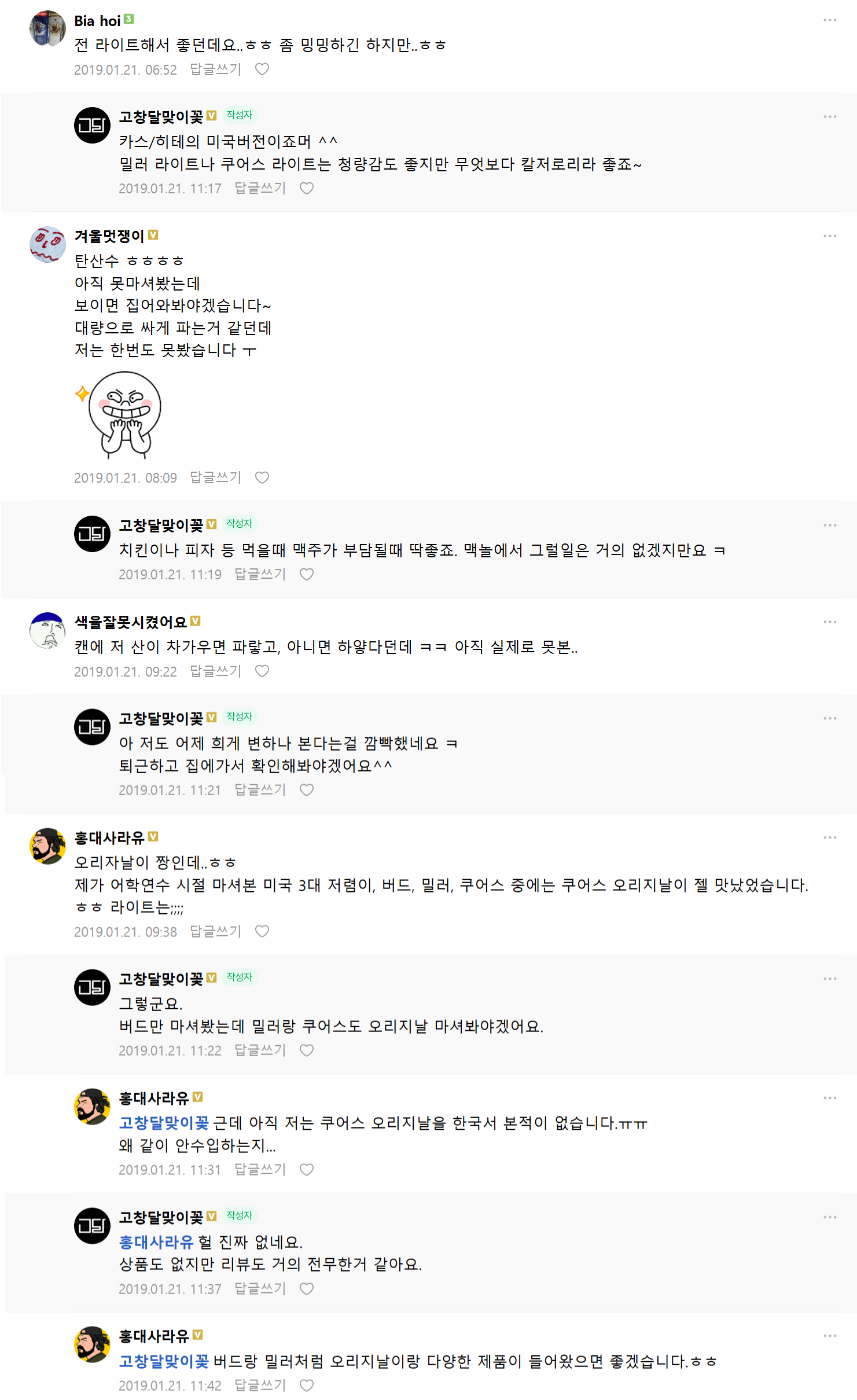 맛도 밍밍하다고 할정도로 가볍지만 약간의 홉향이 느껴지면서 국산맥주의 밍밍함과는 일단 차별화를 보여주네요.