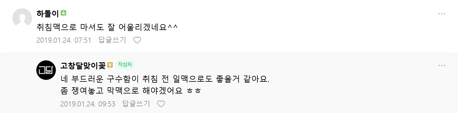 한줄평 따뜻하게 데운 코코넛과육 차가 떠오르는 차가운 맥주
