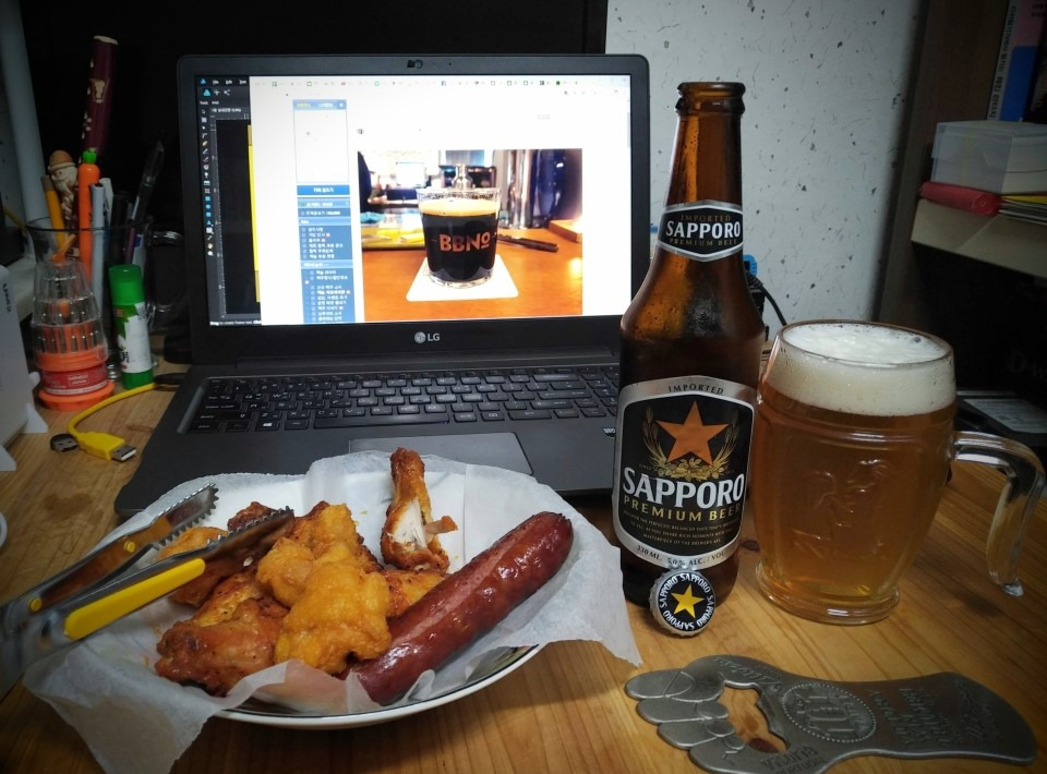 이맥으로 편하게 한잔 할려고 삿뽀로 병맥주를 꺼냈습니다.