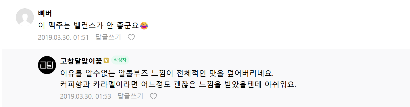 문제는 그 알콜부즈의 느낌이 전체적으로 이 맥주의 맛을 흐린다는 겁니다.
