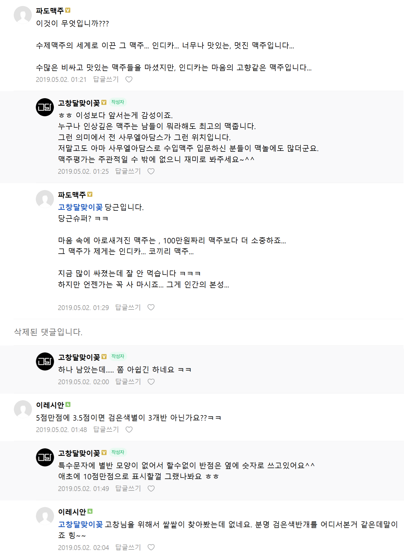 사실 IPA로 보기에는 잠깐의 쓴맛이 전부라 본격적인 IPA라고 보기에는 애매한데 뒤로 이어지는 다양한 재미에 불만을 가질 여유가 없습니다.